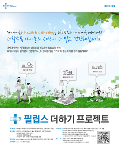 [쿠키 건강] 필립스전자(대표 김태영)는 7일부터 대한민국 어린이들의 삶의 질 증진을 목표로 ‘필립스 더하기 프로젝트(The '+' Project by Philips)’ 아이디어 공모를 실시한다고 밝혔다.