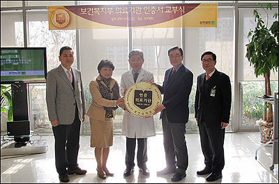 서울부민병원은 지난 10월 31부터 11월 2일까지 3일 동안 철저한 심사를 거쳐 우수 의료기관으로서 인증을 받았으며 김건상 원장(의료기관평가인증원), 하현성 소장(강서구보건소) 등 50명이 참석한 가운데 서울부민병원 10층 회의실에서 기념 현판식을 개최했다.