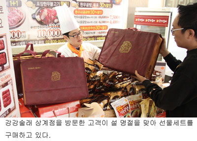 한우불고기1호(1.8㎏/5만원)와 술래양념갈비1호(16대/8만원), 한우불고기2호(3.6㎏/10만원), 한우사골곰탕 대용량세트(800㎖·5팩·15인분/3만7800원)와 소용량세트(350㎖·5팩·10인분/2만2000원) 등 10만원 미만 실속 상품이 인기를 얻고 있다.