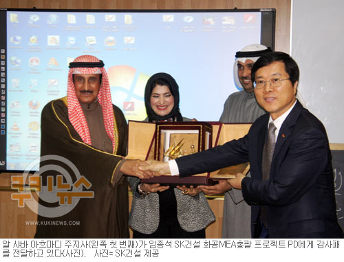 [쿠키 경제] SK건설은 최근 3만3000달러(약 3500만원)를 들여 쿠웨이트 아흐마디 지역 이븐 마지드 초등학교에 쿠웨이트 최초의 ‘스마트 클래스’를 지어 기부했다고 23일 밝혔다.