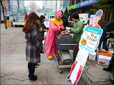 [쿠키 건강] 첨단 척추관절 청담튼튼병원은 29일 청담동 지역 주민들에게 고구마를 나눠 주는 행사를 진행했다.