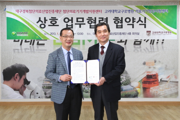 [쿠키 건강] 고대구로병원 의료기기임상시험센터는 최근 대구경북첨단의료산업진흥재단 첨단의료기기개발지원센터와 업무협약을 체결했다.
