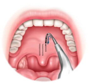 코골이 임플란트는 18x1.8㎜ 크기의 길쭉한 원통형으로 꼬아진 섬유성 조직으로, 코골이와 폐쇄성수면무호흡증이 주로 발생하는 목젖 위쪽 연구개 부위에 2㎜간격으로 3개를 심는다. 삽입된 코골이 임플란트로 연구개의 경직도가 증가돼 이 부위의 진동과 협착이 감소한다.