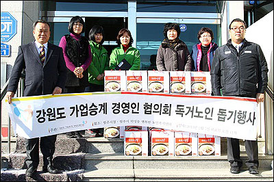 강원도 가업승계기업협회가 주관하고 원주시청과 원주시 학성동 행복한 노인복지센타의 협조로 진행된 이번 행사는 강원도에서 사업을 영위하는 2세 경영인으로 그동안 지역 사회를 통해 사업을 영위할 수 있었던 혜택을 그 지역의 어려운 사람들에게 돌려주며 사회 환원의 기틀을 다지고자 마련된 행사다.