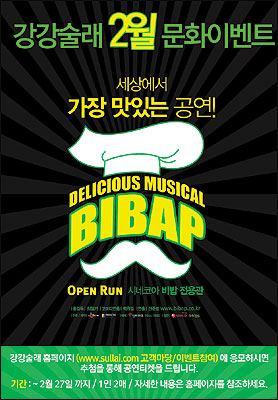 씨푸드 레스토랑 무스쿠스는 멤버십 카드를 발급받은 고객들을 대상으로 한국 고전소설 ‘배비장전’을 원작으로 한 창작 뮤지컬 ‘살짜기 옵서예’ 티켓을 증정하는 이벤트를 벌인다. 오는 28일까지 홈페이지 또는 방문매장을 통해 신청 가능하며 3월 5일 당첨자 발표 후 티켓(1인 2매)은 우편으로 배송해준다.
