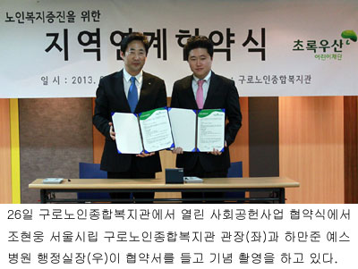 [쿠키 건강] 척추관절 난치성통증치료 구로예스병원은 지난 26일 서울시립 구로노인종합복지관과 사회공헌사업에 관한 협약식을 가졌다고 밝혔다.