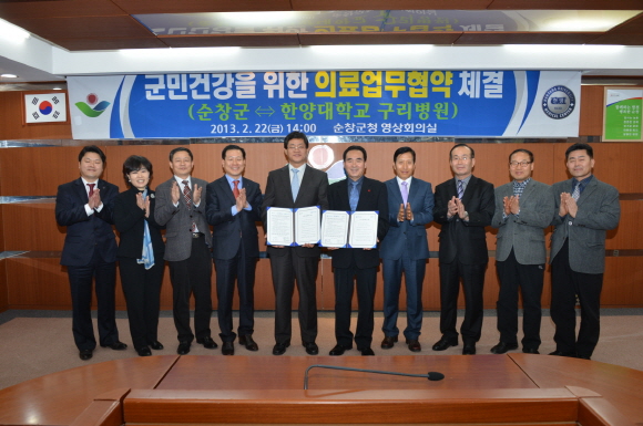 [쿠키 건강] 한양대구리병원과 순창군은 지난 22일 지역주민의 건강 증진과 관광 시설이용에 대한 편의 제공 등에 관한 양해각서(MOU)를 체결했다.