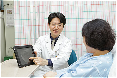 [쿠키 건강] 관절전문 힘찬병원이 태블릿 PC를 활용해 수술 상담을 도와주는 ‘힘찬 스마트 상담’ 서비스를 실시한다.