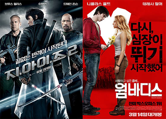 지난 8일에도 오전과 오후, ‘웜 바디스’와 ‘지.아이.조2’의 시사회가 열렸다. 몇 가지 비교 지점에서 두 영화를 돌아본다.