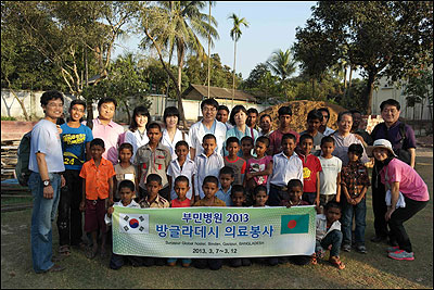 부산 지역 의료진으로 구성된 총 10명의 의료 봉사단은 지난 3월 7일부터 12일까지 방글라데시의 빈민촌인 슈자뿔과 빈단 마을을 방문했다. 현지에 임시 진료소를 개설한 봉사단은 현지 주민 500여 명을 진료하고 구충제, 소화제 등 비상 상비약을 전달했다. 의료 봉사단이 준비한 임시진료소에는 감기 환자부터 섬유종 환자까지 가난 때문에 병원에 갈 엄두를 내지 못한 사람의 발길이 끊임없이 이어졌다.