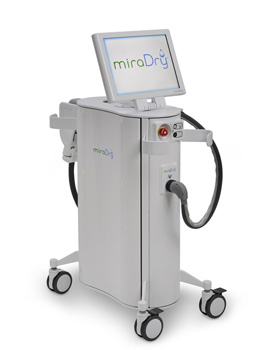 ‘미라드라이 시술’은 고주파와 레이저 사이의 주파수 대역에 해당하는 300MHz~300GHz의 마이크로웨이브를 이용해 피부표면에 손상을 주지 않고, 간편하게 땀샘을 파괴시켜 겨드랑이 땀과 냄새를 제거하는 방식이다. 1~2회의 시술만으로 겨드랑이 다한증을 치료할 수 있는 효과적인 방법으로 평가받고 있으며, 현재 미국 식품의약국(FDA)과 국내 식품의약품안전처에서 승인을 받았다.