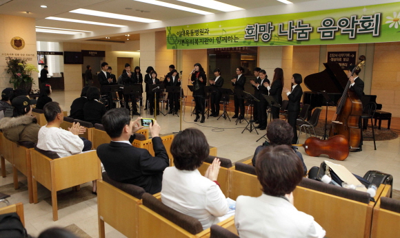 [쿠키 건강] 이대목동병원은 지적 자폐성 장애인들로 구성된 오케스트라를 초청해 환우들에게 희망을 선사하는 이색 음악회를 개최했다.