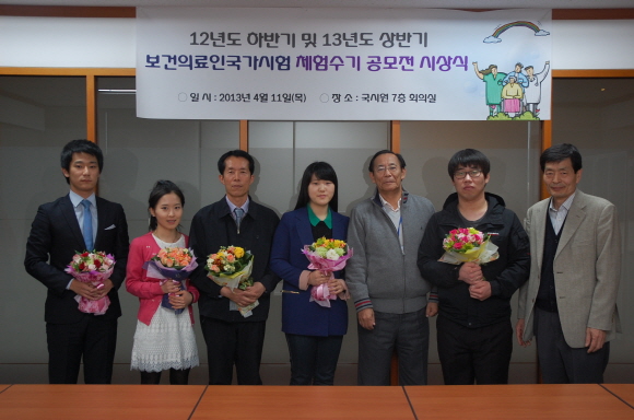 [쿠키 건강] 한국보건의료인국가시험원(이하 국시원)은 11일 2012년도 하반기부터 2013년도 상반기까지 보건의료인국가시험 응시자를 대상으로 실시한 ‘보건의료인국가시험 체험수기 공모전’ 시상식을 개최했다고 밝혔다.