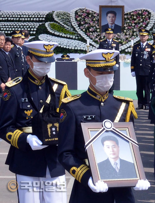 [쿠키 사회] 자살 기도자를 구하려다 순직한 고(故) 정옥성 경감의 영결식이 18일 오전 인천 강화경찰서에서 엄수됐다.