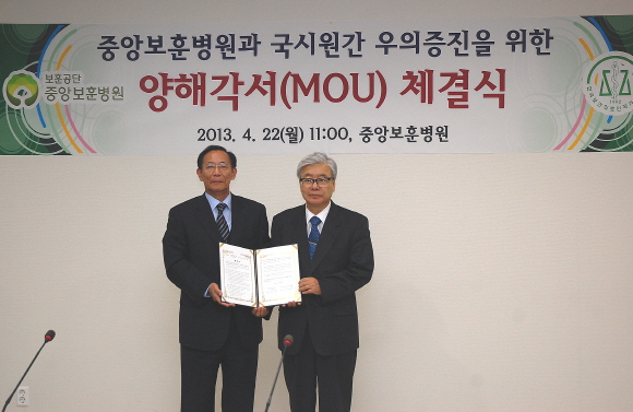 [쿠키 건강] 한국보건의료인국가시험원(이하 국시원)은 22일 보훈공단 중앙보훈병원과 보건의료인국가시험의 질적 향상 및 상호간 우의증진을 위한 양해각서를 체결했다고 밝혔다.