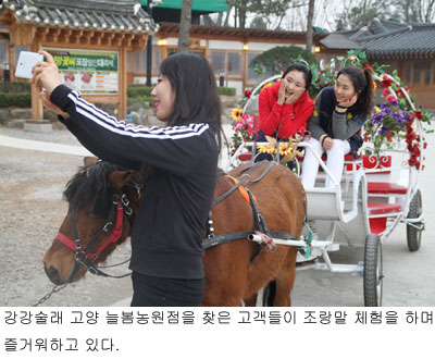 외식업체 강강술래 고양 늘봄농원점은 도심에서 벗어나 가족이나 친지, 연인과 함께 식사 후 자연 속에서 힐링을 만끽할 수 있는 외식문화공간을 지향하고 있다. 넓은 매장 안에는 메타세콰이어길과 느티나무 군락지, 생태연못, 산책로와 쉼터는 물론 토끼와 오리 등 동물농장을 비롯해 조랑말이 끄는 마차 체험 등 즐길거리도 풍성하게 마련돼 있다.