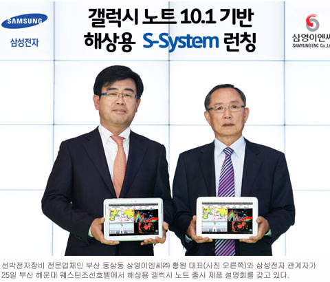 선박전자장비 전문업체인 부산 동삼동 삼영이엔씨㈜와 삼성전자는 갤럭시 노트 10.1을 기반으로 각종 해상항해 전자장비들의 데이터를 통합 관리하는 ‘에스-시스템(S-system)’을 개발했다고 25일 밝혔다.
