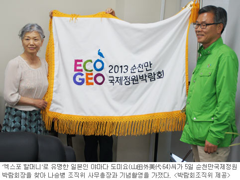 [쿠키 사회] ‘엑스포 할머니’로 불리는 일본 야마다 토미요(山田外美代·64)씨가 순천만국제정원박람회장을 찾아 눈길을 끌었다.