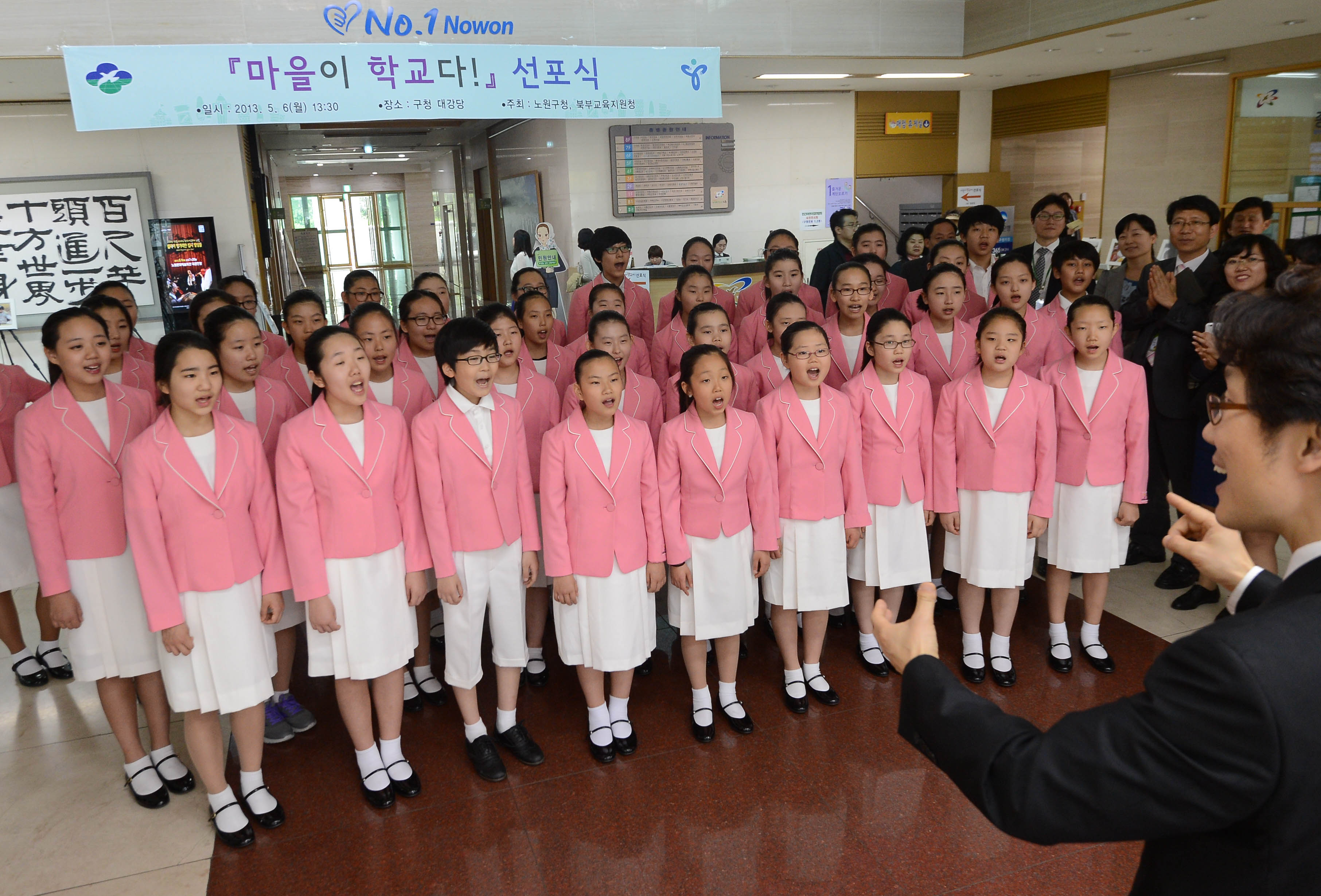 노원구는 6일 오후 노원구청에서 '가정의 달'및 '청소년의 달'을 맞이하여 "마을이 학교다" 선포식을 가졌다. 이번 행사에 청소년 합창단 공연팀이 축하공연을 펼쳤다. 강민석 선임기자