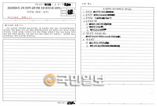 이씨는 답안지 뒷면에 간략하게 정책보고서라는 제목으로 정책명과 정책기관, 정책목표, 주요 정책 내용, 주요 정책 설문조사 결과, 향후 전망 등 6가지 항목에 대해 주요 골자만 간략하게 기재했다. 이씨의 이런 답안지는 높은 점수로 평가됐고 장학사 시험에 합격했다.