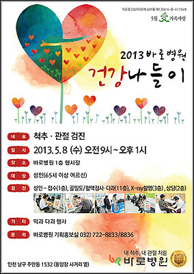 ‘건강나들이’ 나눔검진 행사에 대한 자세한 안내 및 참가문의는 인천 바로병원 기획홍보실(032-722-8833)에서 확인 가능하다. 국민일보 쿠키뉴스 박주호 기자 epi0212@kmib.co.kr