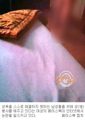 [쿠키 사회] 윤창중 청와대 대변인의 성추행 의혹으로 온 나라가 충격에 휩싸인 가운데 성욕을 스스로 해결하지 못하는 남성들을 위해 성(性)봉사를 해주고 있다는 여성의 페이스북이 인터넷에서 논란을 일으키고 있다. 네티즌들은 신종 성매매 수법일 가능성이 높다고 지적하고 있다.