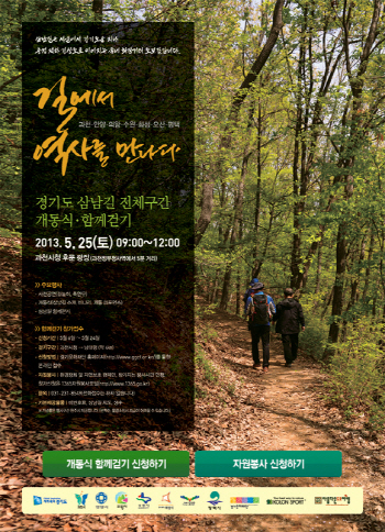 경기문화재단은 개통식과 함께 ‘길에서 역사를 만나다’를 주제로 ‘경기도 삼남길 개통식 및 함께걷기’ 행사를 갖는다. 함께걷기는 과천시청에서 남태령까지 4km 구간에서 열린다. 참가신청은 오는 24일까지 경기문화재단 홈페이지(www.ggcf.or.kr)로 하면 된다.