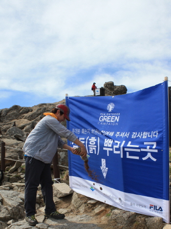 [쿠키 생활] 휠라 아웃도어는 지난 17일과 18일 양일간 지리산 국립공원에서 등산객들과 함께 훼손된 촛대봉의 복원을 장려하는 ‘휠라 아웃도어 그린 캠페인’을 성황리에 마쳤다고 밝혔다.