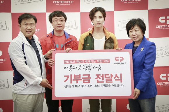 센터폴 사업부는 지난 25일 대구 중구청을 통해 소년소녀가장에 판매 수익금의 일부와 원빈 측의 기부금을 전달했다. 기금 전달식은 대구 동성로점에서 진행됐으며, 센터폴은 향후에도 ‘아름다운 행복나눔’ 캠페인을 비롯해 다양한 선행 활동을 펼칠 계획이다.