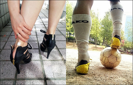 ◇새 신발이 두려운 여성의 발뒤꿈치 상처, 압박 계속되면 아킬레스건염 불러= 여성의 패션을 완성시켜주는 신발은 굽이 없는 플랫슈즈, 각선미를 한껏 드러낼 수 있는 킬힐, 시원하면서도 멋스러움을 더해줄 수 있는 글래디에이터 샌들 등 그 종류도 다양하다. 그러나 여성이라면 누구나 한 번쯤은 이러한 예쁜 새 신발 신기를 두려워해 본적이 있을 것이다. 새 신발을 신고 산뜻한 기분으로 외출을 나서지만 뒤꿈치가 까지는 쓰라린 경험을 감수해야 하는 경우가 잦기 때문이다. 이처럼 뒤꿈치에 상처가 나는 것은 신발 길들이는 데 어쩔 수 없는 통과의례라고 할 만큼 당연시 되고 있다. 때문에 뒤꿈치가 까지면 약을 바르고 밴드를 붙이는 것이 최선의 방편이라고 생각하고 이를 방치하기 십상이다. 하지만 이러한 상처가 단순히 잠시 피부가 상하는 것이라고만 생각한다면 오산이다. 딱딱한 신발이나 새 신발로 인한 뒤꿈치 상처는 1차적으로는 피부에 상처가 나는 것이지만, 그 속의 아킬레스건을 압박하게 돼 지속된다면 ‘아킬레스건염’이 발생할 수 있기 때문이다. 아킬레스건염은 말 그대로 발뒤꿈치 바로 위에 있는 굵은 힘줄인 아킬레스건에 염증이 생기는 질환을 말하는데 꽉 끼는 신발의 압박과 동시에 통증을 완화해보고자 발에 힘을 주고 걸음걸이를 계속 하다 보면 발목에 무리를 주게 돼 발병될 수 있다.