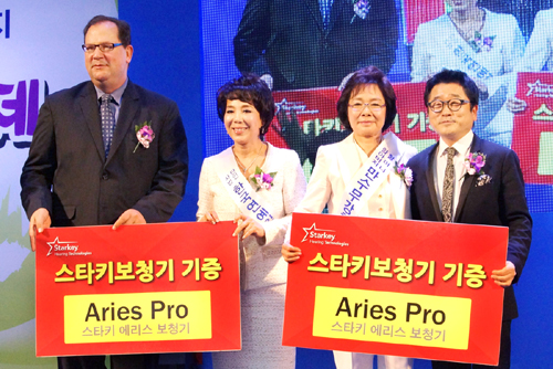 스타키코리아는 이날 난청으로 어려움을 겪고 있는 장수 노인들의 난청 해소와 복지 증진을 위해 100만원 상당의 100% 디지털보청기 에리스(Aries) 2대를 비롯해 500만원 상당을 후원했다.