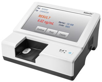 셀렉스온은 소형 면역진단기기로 심장질환은 물론 갑상선질환과 암(간암·대장암·전립선암) 관련 바이오 마커를 진단할 수 있는 현장 진단장비(POCT)이다.