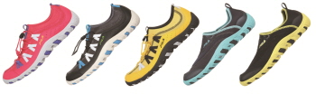 ‘아쿠아 마린’은 슬립온 스타일로 야외활동뿐 아니라 일상에서 캐주얼웨어와 코디할 수 있다. 네오플린 소재와 메쉬 소재를 사용해 활동성과 통기성을 강화하고 배수 기능을 극대화하는 등 디자인과 기능성, 실용성을 고루 갖췄다. 바다, 계곡, 워터파크 등 여름철 물놀이나 장마철 도심에서 부담 없이 편안하게 착용할 수 있다.