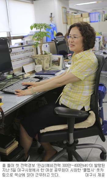 대구시는 전 공공기관 냉방기 가동 중지, 사무실 조명 20%와 복도 조명 80% 소등 등 강력한 절전실천과 함께 시원하면서도 예절에 어긋나지 않는 옷차림 ‘쿨맵시’ 캠페인을 시작했다. 일반 기업에도 이를 적극 권장키로 했다. 포항시는 아예 3종 반팔남방 3종을 쿨맵시 의상으로 제작해 직원들에게 오는 9월까지 입도록 했다.