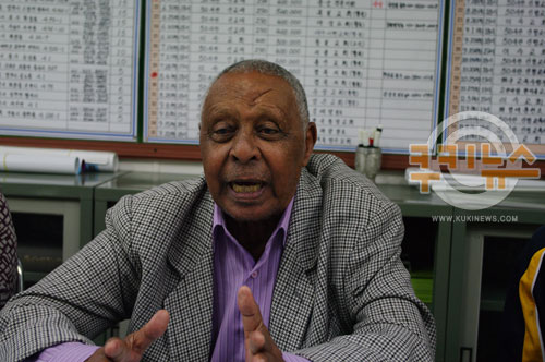 (사진설명-한국을 59년 만에 다시 찾은 에디오피아 참전용사 데무세 템템씨가 10일 오전 대구 서현교회에서 6·25전쟁 당시 한국 상황에 대해 이야기하고 있다.)