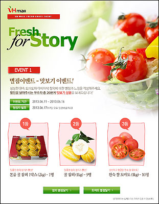 [쿠키 건강] 비타민하우스㈜가 만든 대한민국 건강 종합 쇼핑몰 VH몰에서 오는 16일까지 완숙 토마토와 아삭아삭 참외를 체험해볼 수 있는 ‘별점이벤트-맛보기이벤트’를 실시한다.