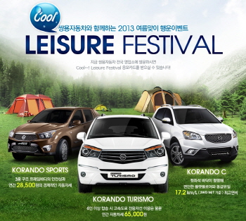 [쿠키 생활] 쌍용자동차가 여름휴가 시즌을 맞아 고객들이 알찬 휴가를 보낼 수 있도록 풍성하고 다양한 ‘Cool Leisure Festival’을 개최한다. 시승 차량 제공, 고급 캠핑 용품 증정 이벤트 등이 진행된다.