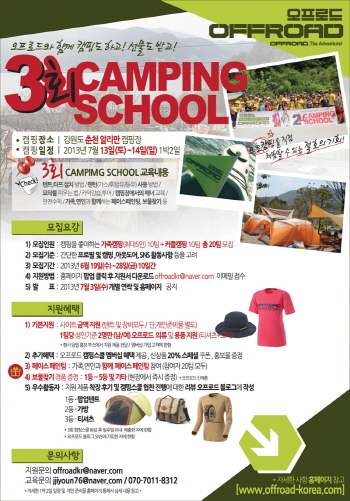 [쿠키 생활] 캠핑웨어 브랜드 오프로드는 오는 19일부터 28일까지 ‘제3회 캠핑스쿨’ 참가자를 모집한다.