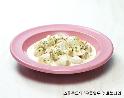 구름만두 까르보나라는 파스타 대신 한입에 쏙 들어가는 새알 크기의 만두를 넣은 색다른 메뉴다. 아기자기하고 구름같이 귀여운 비주얼을 살려 음식 크기와 모양에 민감한 여성들의 입맛에 맞췄다.