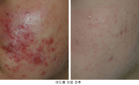 ◇여름 여드름, 예방하거나 줄이거나 치료법은 여러 가지= 여드름을 치료하는 가장 보편적인 방법은 크게 약물요법과 스케일링이 있다. 이 치료들은 여드름 재발을 100% 막아주진 못하지만 가벼운 여드름에는 효과적이다. 약물요법은 항생제 투여나 경구요법 등이 있고 여드름균을 억제하거나 피지선의 기능을 억제하는 효과가 있다. 약물복용으로 여드름이 쉽게 치료되지 않는다면 막힌 모공을 열어주고 모공주변에 쌓인 각질을 제거해주는 스케일링을 받는 것도 도움이 된다. 각질층이 제거되면서 모낭이 열리게 돼 피지도 원활히 배출되고 농포도 빠른 시일 내에 터지기 때문에 치료기간이 단축되고 여드름 증상도 개선된다. 곪은 여드름의 경우 흉터로 남을 가능성이 많기 때문에 염증을 가라앉히는 약물을 여드름 부위에 주사해 치료하기도 한다.