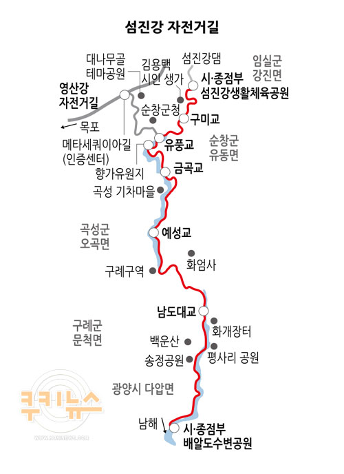 [쿠키 사회]전북 임실에서 광양까지 섬진강을 따라 148㎞에 이르는 자전거길이 개통된다.
