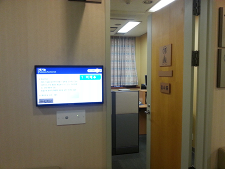 우선 삼성서울병원 건강검진센터에 들어서면 수진자는 안내데스크에서 모바일 기기를 이용한 문진표 작성과 각종 정보를 확인해 볼 수 있는 사용방법에 대해 안내 받게 된다. 본격적인 검사가 시작되면 RFID 시스템은 수진자의 위치에 대해 실시간으로 인식하고, 위치에 따라 수진자는 모바일 기기와 키오스크(kiosk)를 통해 검사 소요시간이 최소인 검사실로 안내 받는다.