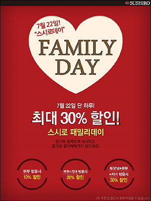 스시로, 22일 패밀리데이 가족고객 할인 이벤트… 부부 10%, 자녀동반 부부 20% 할인도
