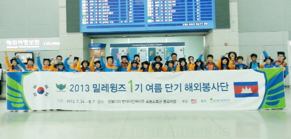 [쿠키 생활] 밀레의 청년봉사단 ‘밀레 윙즈’ 1기가 발족 후 첫 공식 활동으로 캄보디아 봉사를 위해 지난 24일 출국했다.