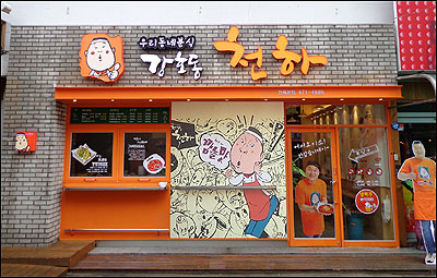 이에 앞서 ‘강호동 천하’는 밝고 경쾌한 분위기와 경쟁력 있는 메뉴를 앞세워 지난해 소자본 창업 브랜드로 리뉴얼을 단행했으며 일반 분식점의 수많은 음식 조리에 대한 부담을 줄이고 100% 국내산 쌀을 사용한 떡볶이를 새로 개발해 소비자들에게 큰 호응을 얻고 있다. 특히 ‘우리 동네 맛있는 분식’이라는 모토로 육칠팔만의 한식 노하우를 적용한 특화된 소스로 떡볶이를 새롭게 개발했다. 더불어 수제튀김, 순대, 우동, 주먹밥 등 대표 분식류를 추가해 기존 떡볶이 브랜드와 달리 차별화되고 맛깔스런 메뉴를 선보였다.