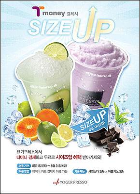 [쿠키 생활] 요거프레소는 다음달 1일부터 31일까지 한 달간 ‘티 머니 카드’로 결제하는 고객들을 대상으로 무료 사이즈 업그레이드 혜택을 제공한다.