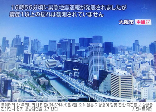 [쿠키 지구촌] 대지진 공포가 엄습한 일본에서 8일 기상당국의 지진 오보로 한바탕 소란이 벌어졌다.