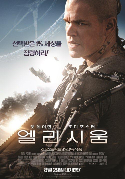 오는 29일 국내 개봉하는 엘리시움은 서기 2154년 버려진 지구에서 사는 사람들이 가난 전쟁 질병이 없는 1%의 세상을 찾기 위해 생존경쟁을 펼치는 모습을 담았다.