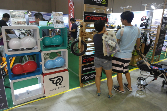 [쿠키 생활] 오디바이크는 2013 코리아 아웃도어쇼에서 유아용 밸런스 바이크 ‘얼리 라이더’를 선보였다. 유아의 균형감각을 익히고 활발한 신체활동, 두뇌활동을 일으키는 제품이다.
