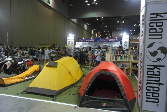 [쿠키 생활] 2013 코리아 아웃도어쇼에 참여한 카라반캠프는 캠핑과 관련된 다양한 브랜드 제품을 선보였다. '인테그랄 디자인' 텐트와 '클린켄틴' 물병, '씨투써밋'의 각종 소품 등 아웃도어 활동에 필요한 제품들이 전시됐다.